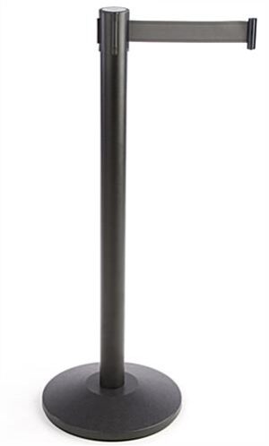 QueuePole.Economy 41.5” Black Stanchion Post & 6.5’ Belt, 2 Literature Pockets– Gray