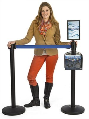 Stanchion w/ 2 Literature Pockets & Sign Holder & Blue Belt – Non-Glare Lenses