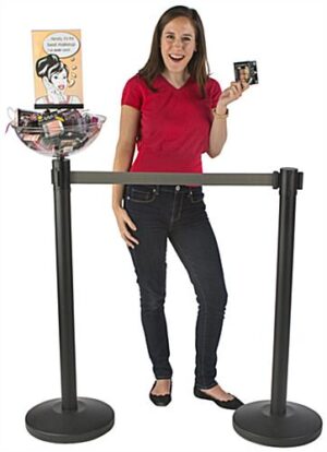 This gray stanchion and post with bin has a 6.5’ long retractable belt for smaller crowd control areas, such as register lines. Featured with this system is a large merchandising bowl, making it simple to display last minute items during cash out. Place bulk merchandise such as tissue packets, hand sanitizers, or candies inside the basket on top of the assembly control stanchion, and promote those products with a customized graphic framed inside the 11” x 7” sign holder. Clearly display items to increase impulse sales using this crowd management system with a retractable belt! Use this stanchion in retail and commercial stores to manage customers and help produce more profit. This pole is sold in sets of two.