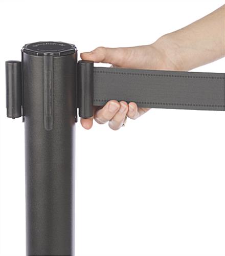 QueuePole.Economy 41.5″ Black Stanchion Post with 6.5′ Gray Retractable Belt