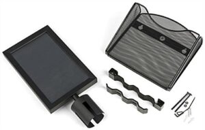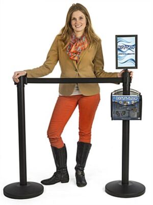 This stanchion w/ 2 literature pockets & 11” x 7” sign frame is the perfect fixture for your next trade show or large corporate event. The black steel crowd control post with a 6.5’ retractable belt includes a holder for signage which easily attaches to the top of the unit. Additionally, each stanchion with a weighted base features a double sided metal mesh receptacle to offer passersby 8.5″ x 11″ magazines, catalogs or pamphlets intended to promote your brand and sell your product! This crowd control post is ideal for use during conferences and is also often used in banking centers, casinos, hotels and for many other industries! Each stanchion includes a 6.5’ black retractable belt which extends and attaches to the second pole included with the unit. Maximize exposure for your brand and products at the next large event using this crowd control post with signage & double sided magazine holder!