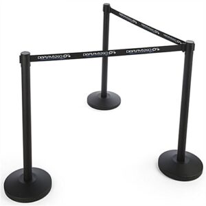 This is a black custom stanchion belt with 3 color printing that is available with single or double sided graphics. Silkscreen application allows for customizable logos and emblems to be adorned on the 6.5′ long retractable band. Designed to be compatible with the QueuePole.Economy Series, each cartridge secures to the top of the posts with screws for an easy assembly process. Utilize a 4 way belt receiver to create a surplus of crowd control configurations to best suit your business’s needs.