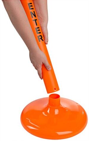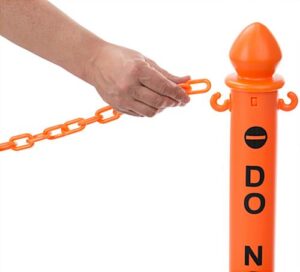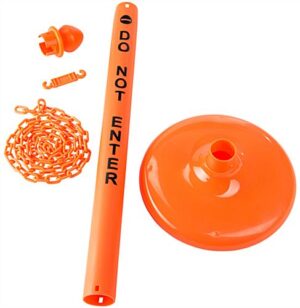 Use this orange safety post & chain kit as a warning to manage crowd control by deterring the public from restricted areas. Ideal for indoor or outdoor use, this plastic stanchion is suitable for commercial and industrial workplaces with its rust-proof design and fade-resistant color. The fence post & chain kit not only displays a warning but creates a physical crowd control barrier with the included 6.5’ long belt. If needed, the hollow base for this outdoor stanchion can be filled with sand to withstand tipping on windy days or busy spaces. Each QueuePole.Outdoor plastic pole is pre-printed with a bold “Do Not Enter” message to restrict unauthorized people from accessing sensitive spots in the store, construction site, or warehouse. While traditional signs are passive in use, this post & chain kit can fence off areas to block access to danger zones and improve an existing prevention program.