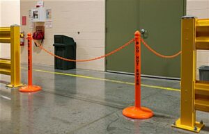 Orange Stanchion Safety Post & Chain Kit with Decorative Acorn Tops