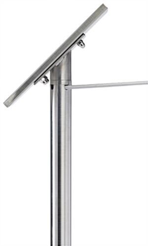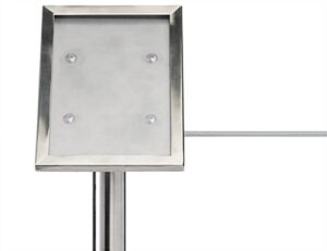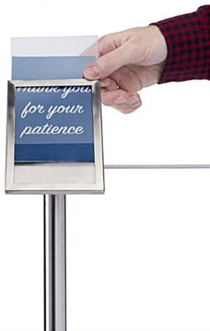 This exhibit barrier 45-degree label holder turns your existing museum stanchion into an information stand that is both discreet and efficient. The sign plate affixes to a 16” high QueuePole.Slim post at a comfortable viewing angle in either portrait or landscape orientation. This space-saving 45-degree label holder has a discreet 4 x 6 sign frame that blends seamlessly into your existing décor. The elegant, minimalist design with a non-glare PVC lens provides a clean look that prioritizes your message. By replacing the top cap with the included screw-on angle plate mount, any QueuePole.Slim post can become an information stand that won’t take up any additional room. An industry standard in any museum or gallery, this 45-degree label holder is a must-have for public displays.