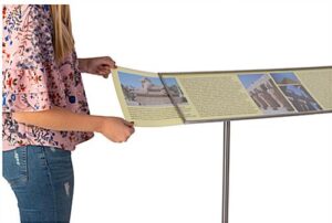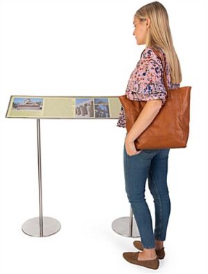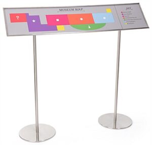 QueuePole.Slim 48 x 11 Reader Sign Panel for Stanchions, 60° Angled Bracket – Silver