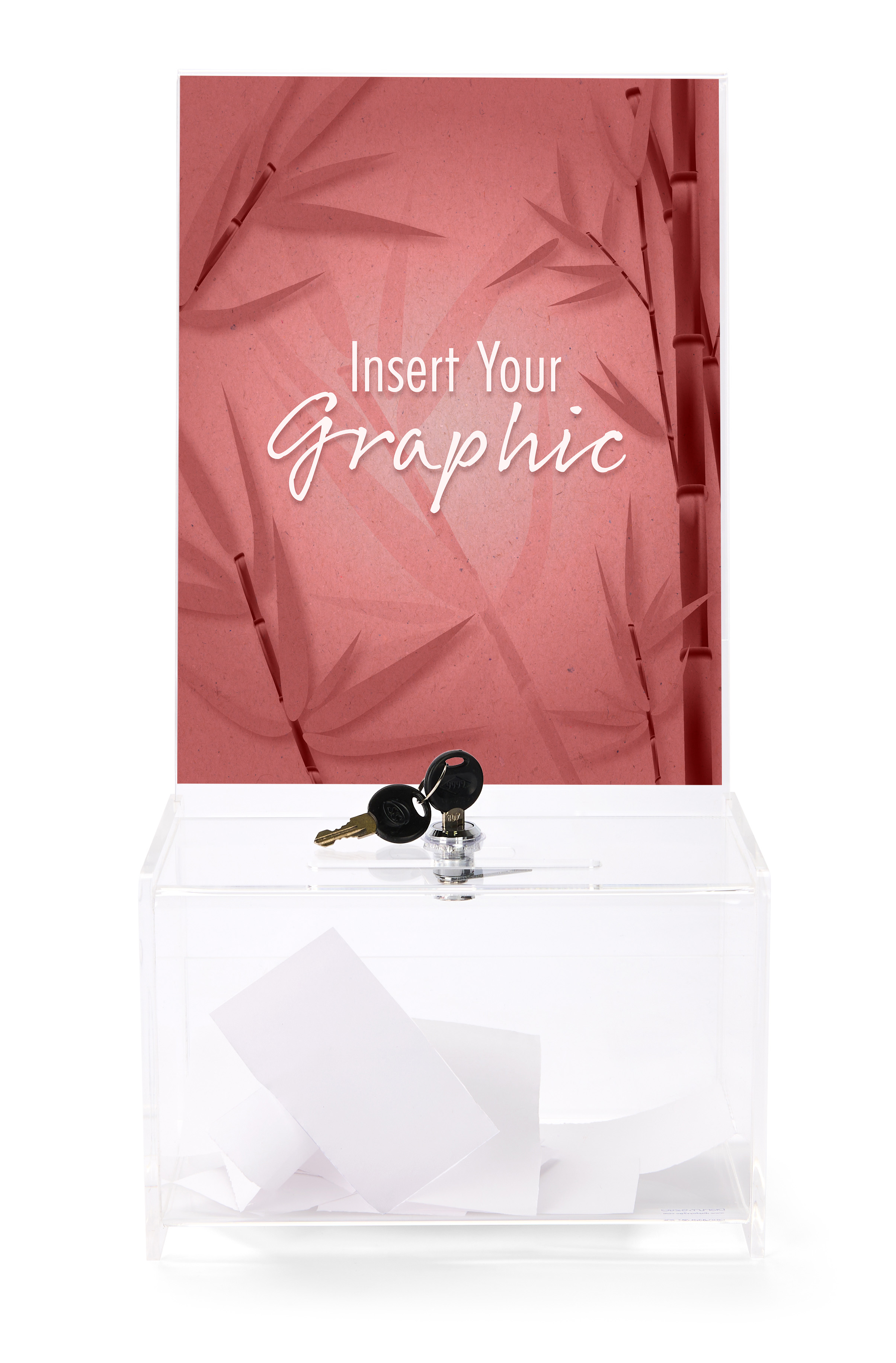 Recycled Acrylic Donation Box, Lockable, 8.5 x 11 Header – Clear