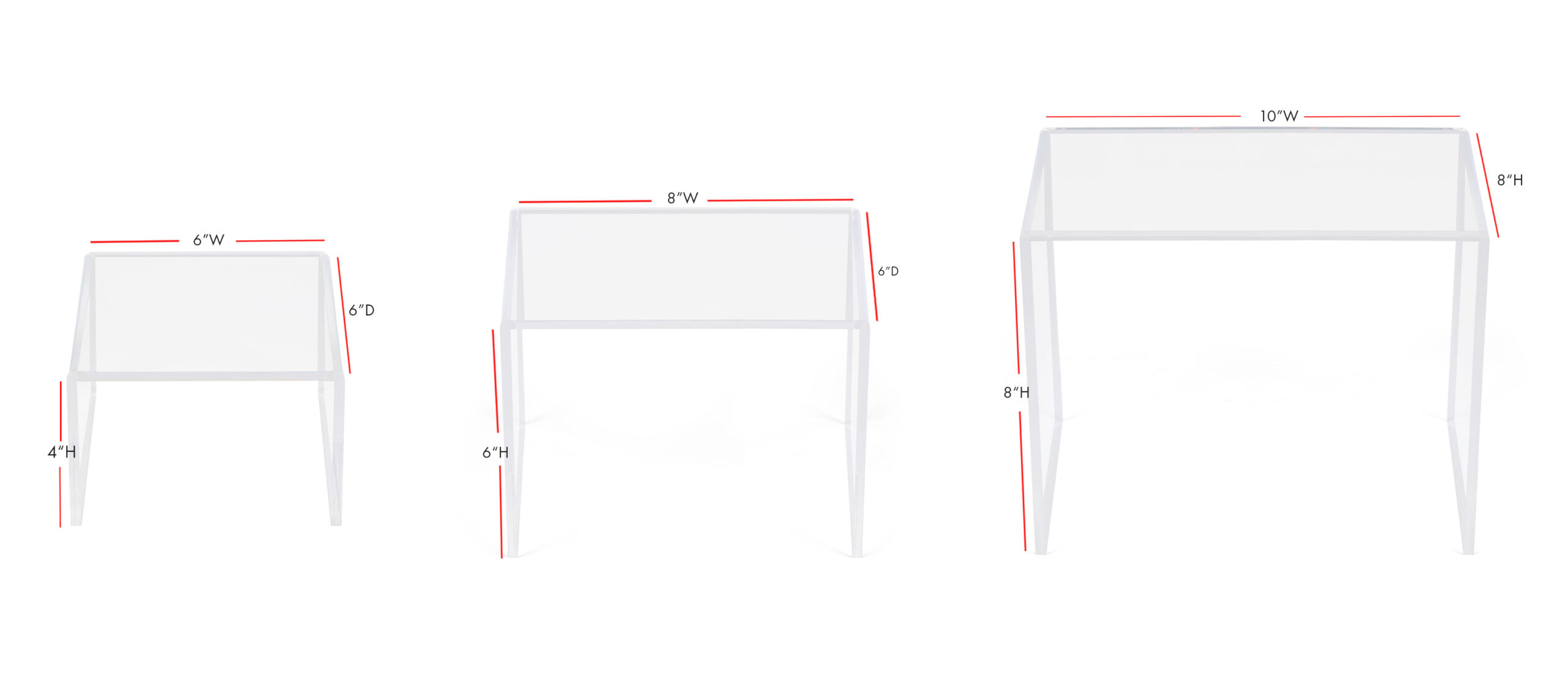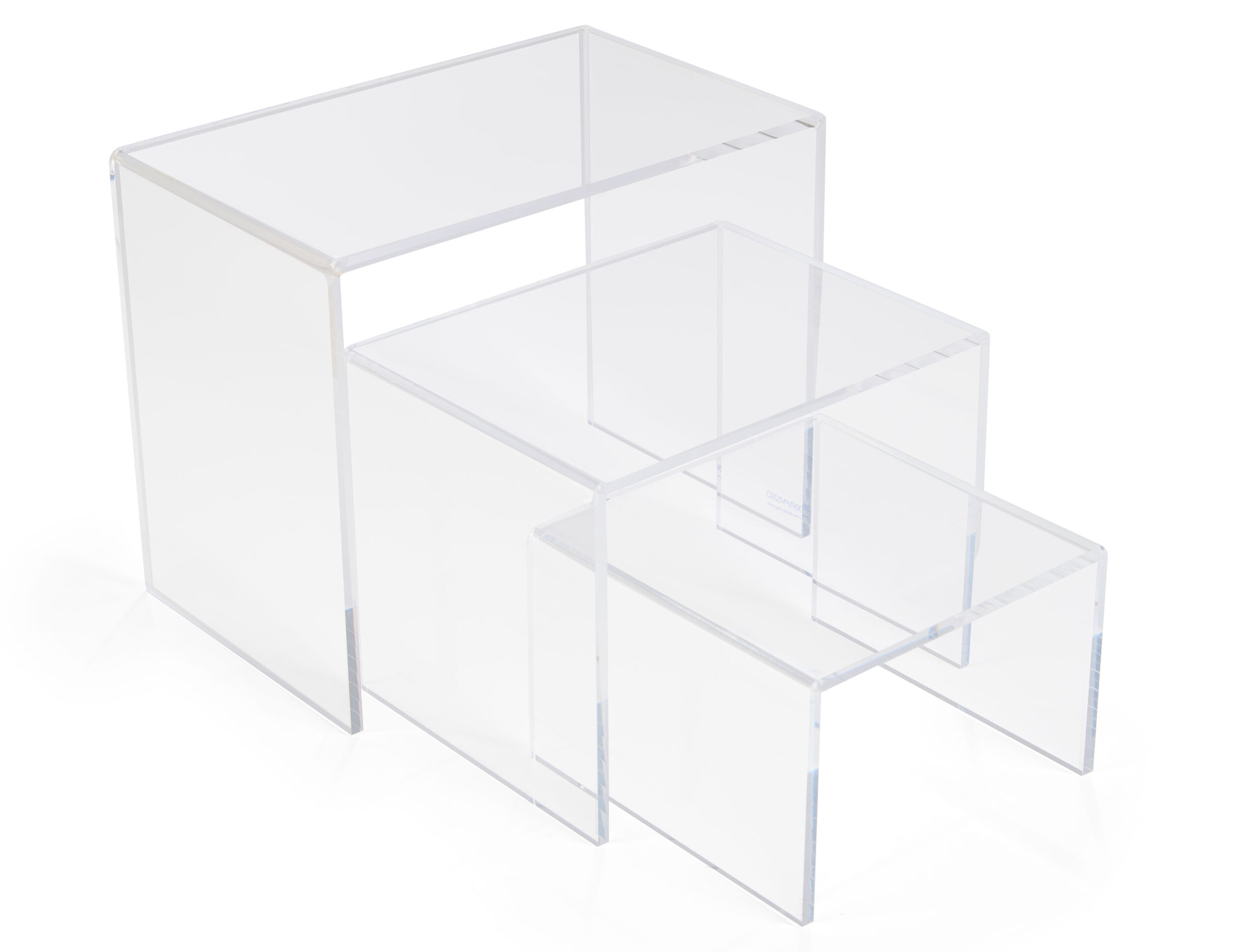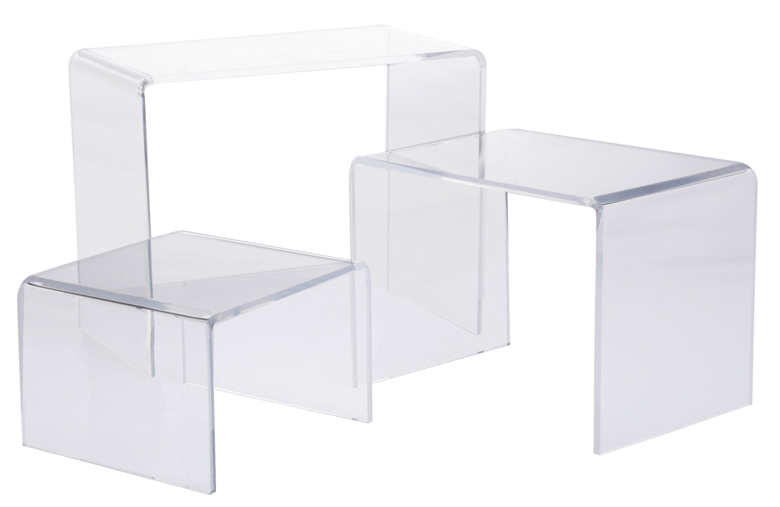 Recycled Acrylic Riser Display, U-Shaped Risers, Set of 3 – 6, 8 and 10″ Wide – Clear