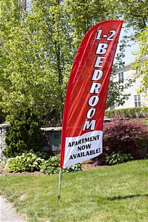 Replace your existing RE12BEDRD advertising banner with this 1-2 BEDROOM red sail flag for a fresh new look. Perfect for showing apartments, each swooper attaches to your ground spike for use outdoors for maximum curb appeal. Knitted polyester fabric construction offers fade resistance against the elements to keep the red sail flag looking vibrant over time.