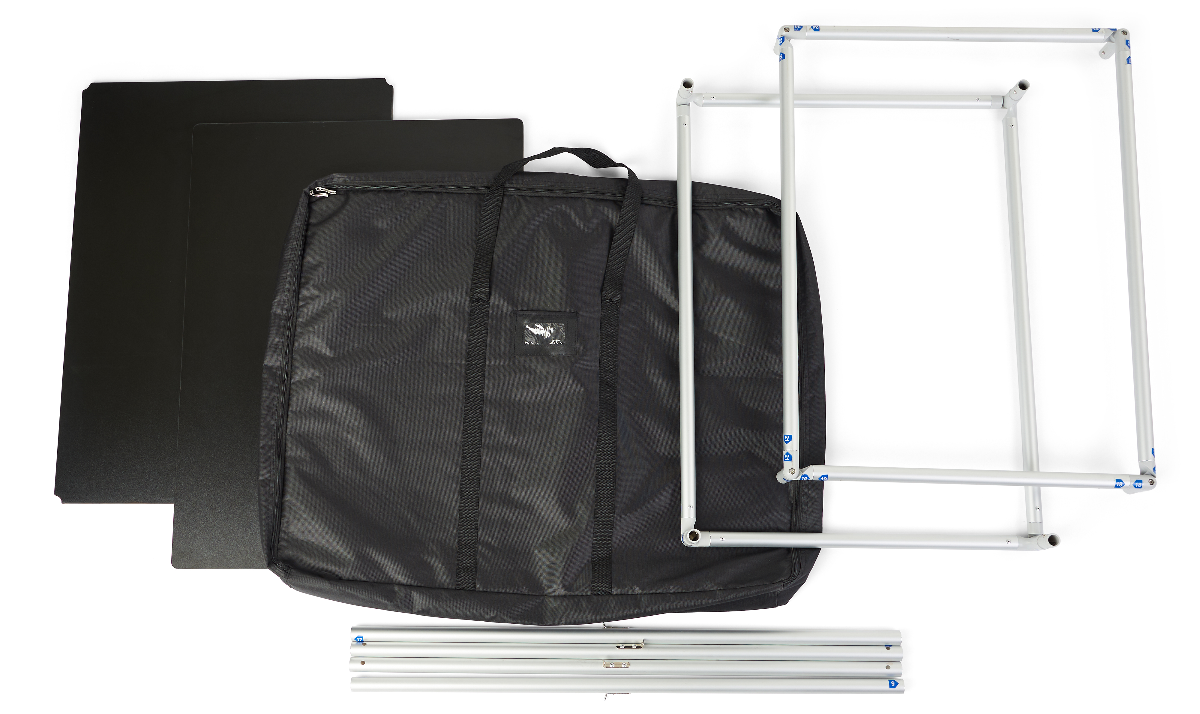 This replacement frame for EZMAG counter includes a black nylon carry case to make transportation from one event to the next effortless. The worktables magnetize together to create the perfect size and configuration for your next event. The easy-to-assemble aluminum tubing has numbered click buttons, allowing you to assemble within minutes before flea markets, sporting events, trade shows, and more. Pair this durable replacement frame for EZMAG counter with full-color custom printed graphics (RGEZMAGSCTR) or (RGEZMAGDCTR), which we sell separately to enhance your company’s branding at your next exhibit.