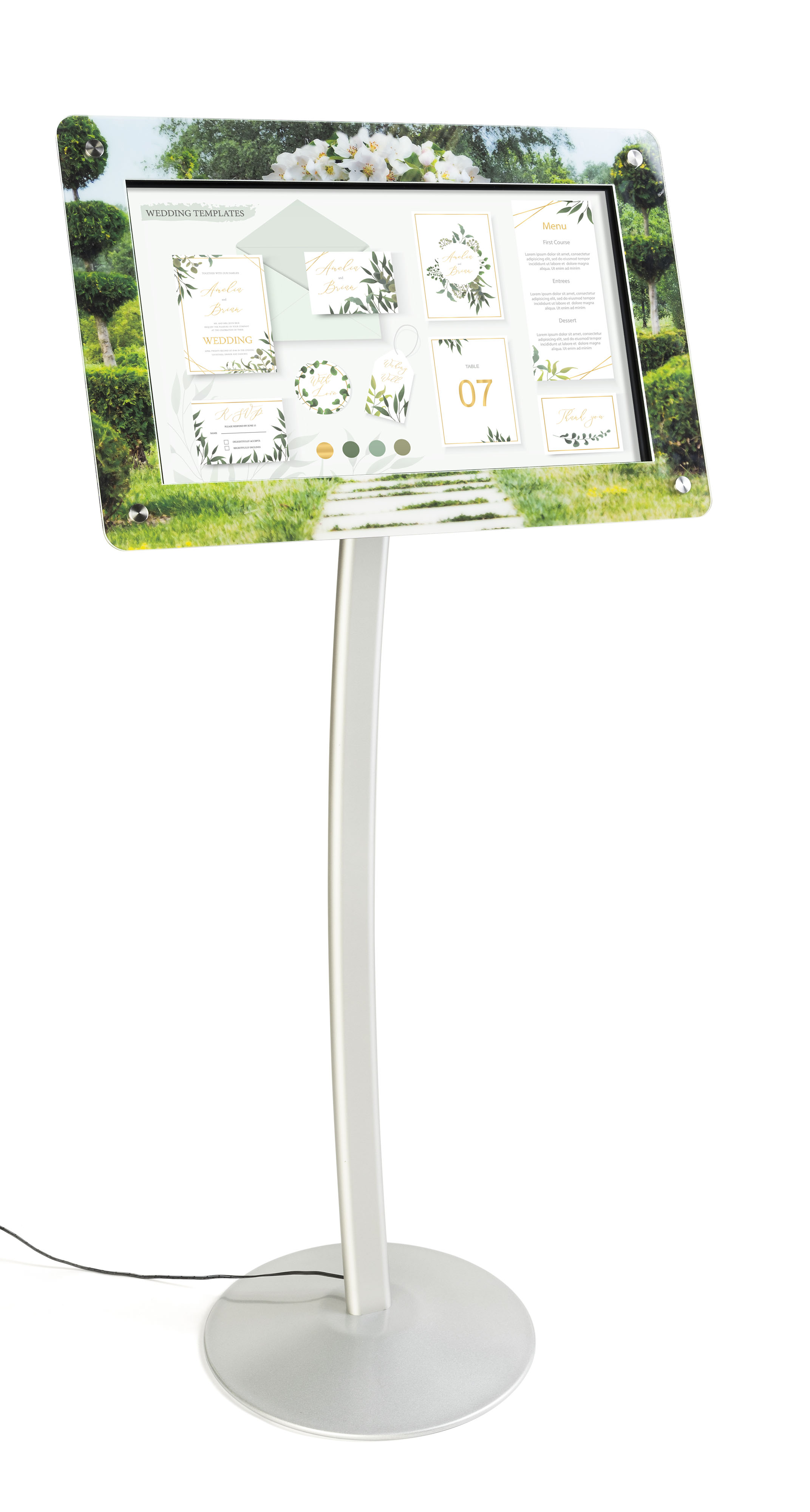 Create another custom frame for DPF215 digital sign stands and make that 21.5” display screen pop with awesome graphics. Watch the impact this wide size media presentation and exciting personalized boarder can do for your business. This replacement custom frame for DPF215 digital sign stands will help you generate another successful advertising message wtih a fresh new graphic.