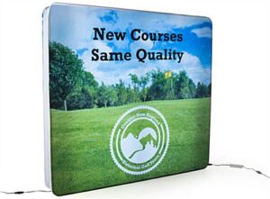 When it’s time to update your older artwork, pick up these replacement graphics for backlit backwall rather than buying a whole new display. Using long-lasting dye-sublimation printing, the stretch fabric fits tight over the frame and zips in place for a clean, professional backdrop to impress visitors as they enter your booth. Once you turn on the LED lights, the illumination shines through the replacement graphics to beautifully highlight your advertising without washing out.