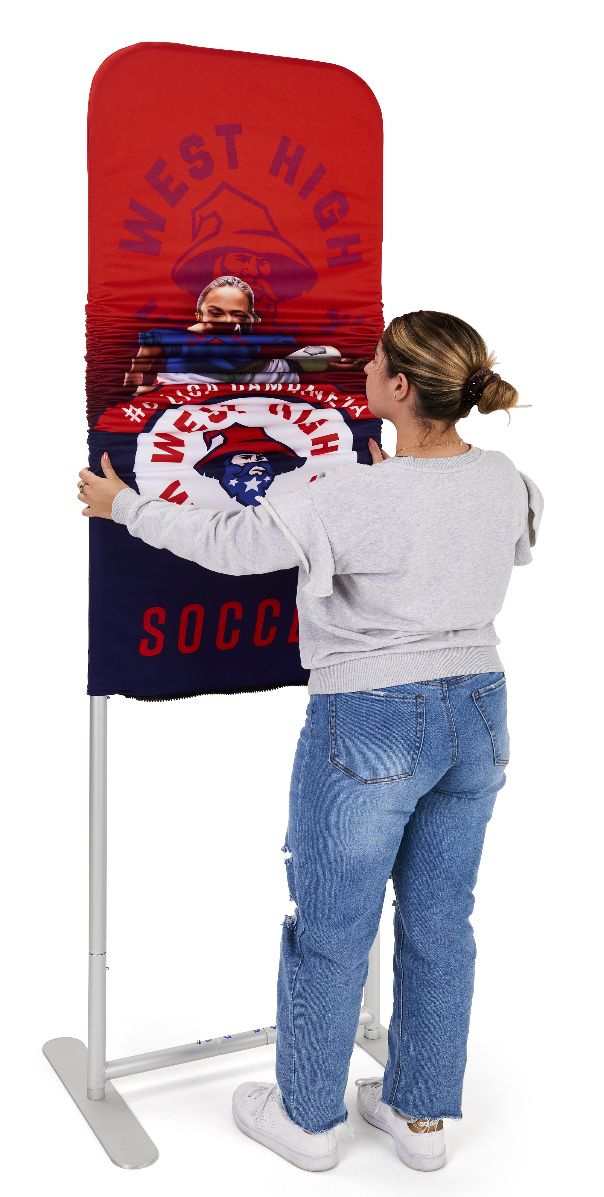 Personalized Slip Top Banner Stand with Custom Printed Polyester Fabric Graphic