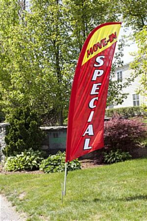 MOVE-IN SPECIAL Red Realtor Flag with Single-Sided Graphic