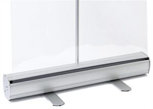 Our transparent countertop retractable banner keeps guests and employees safe against the spread of cough and sneeze contaminants. As an alternative to rigid acrylic barriers, this protective guard is comprised of a flexible polyester panel that conveniently collapses into its base to make temporary setups a breeze! Each transparent countertop retractable banner is easy to set up or break down where needed, making it great for reception desk areas, checkout counters, hospitals, corporate offices, retail stores, banks, and more. Sanitize this sneeze barrier with soap and warm water or wipe down with a non-abrasive washcloth and mild spray cleaner for quick cleanups between business exchanges. Additionally, use the included carry bag to transport our lightweight, transparent countertop retractable banner to traveling events or store away when this tabletop display is no longer needed. Use our portable cough shield to create a safer business environment while easing the concerns of employees and customers within your space today!