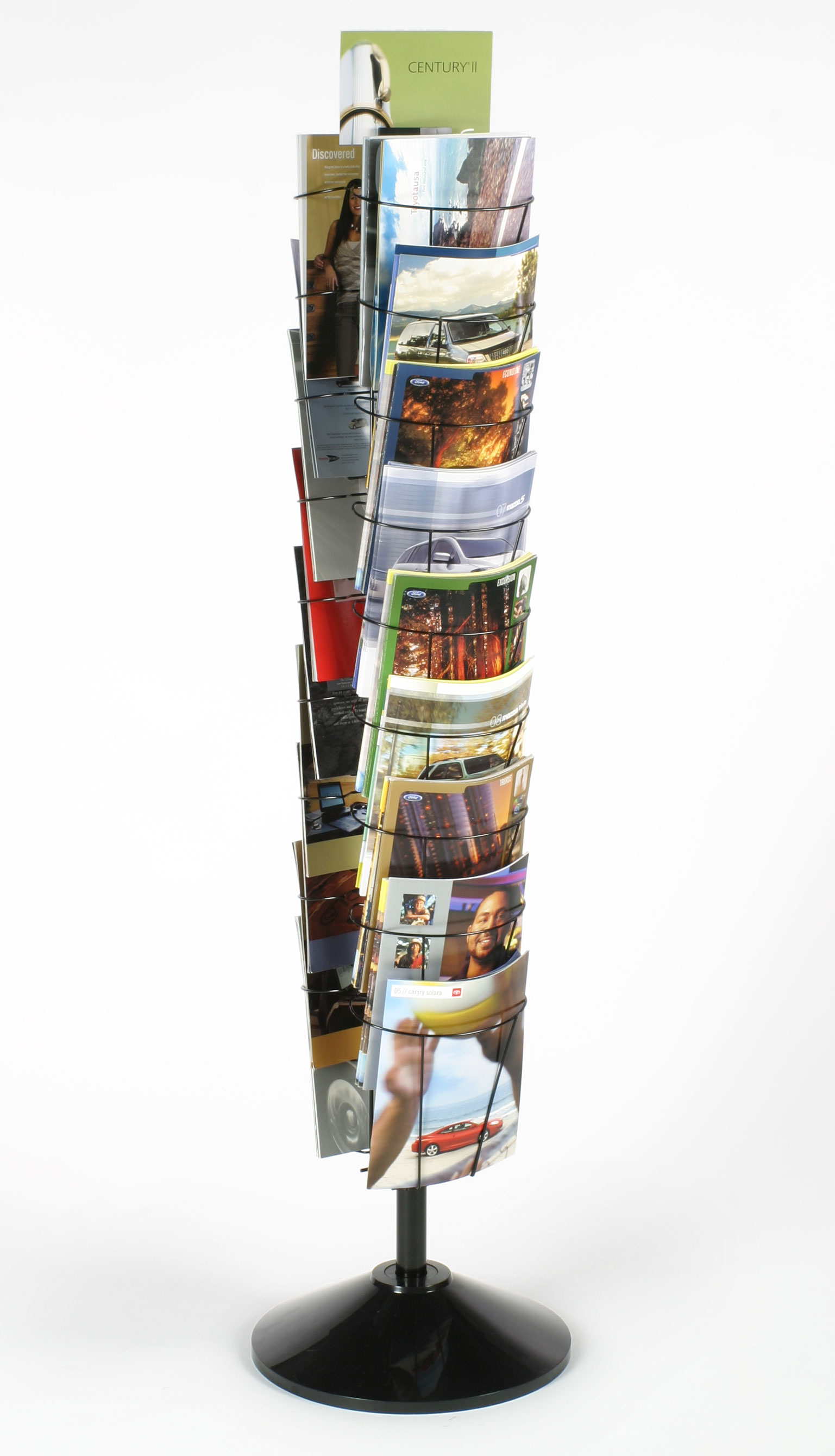 At 5′ tall, the literature rack is a great literature holder for a room with limited wall or counter space. Our literature rack, also known as a literature holder or brochure rack, rotates for easy viewing. This floor-standing literature display, literature rack is made of a black welded wire. This presents a sturdy yet eye-catching design. We offer the literature display as well as similar products through our website. Buy the brochure holder to organize your lounge area and make it a more welcoming environment.