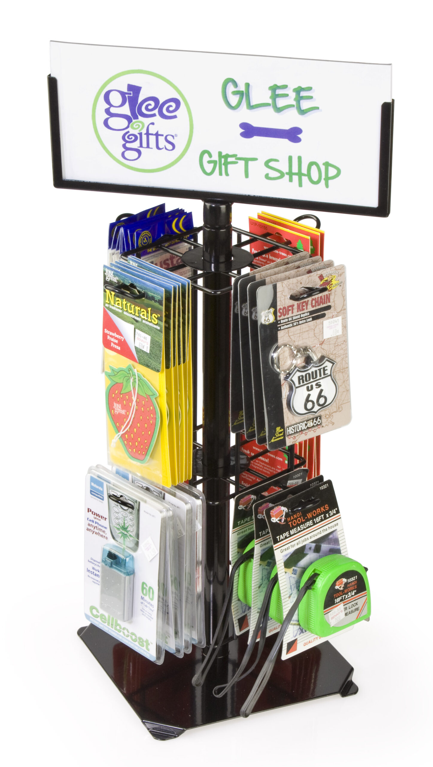 This hook display rack is an ideal way to showcase your merchandise to the public, as the fixture keeps the items neatly organized. Constructed from metal, this counter stand is durable to withstand in any busy environment and last for many years. This wire merchandise holder, hook display rack has a simply design, making it ideal for use in any retail environment. This item is great for use on countertops, as it takes up very little space. The hook display rack can be placed on countertop areas or cash register to increase impulse buys. This product can be used to lure last-minute shoppers to buy displayed items while waiting to cash out. This hook display rack, such as a wire countertop stand, has two tiers for displaying items. Each tier includes (4) pegs for displaying various goods for sale. Each of the pegs is curved up at the end to prevent merchandise from slipping off. This retail counter spinner, hook display rack is designed to hold small blister pack goods, like candy, toiletries, packages of gum, key chains and other accessories. The entire fixture rotates 360°, permitting customers to easily view the entire selection and grab the item they wish to purchase before they check out. This two-tier wire display rack is sure to attract attention with its built-in header area. This enables retailers to add their own custom logo, message or sign. Retailers can make use of the removable header area to present alluring messages to draw the attention of customers. This fixture is typically found in places like bakeries, pharmacies, convenient stores and gift shops, as well as many other retail settings.