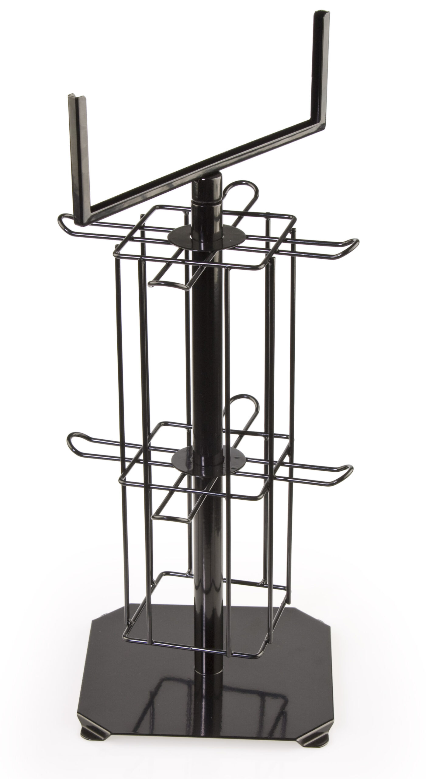 Rotating Wire Rack w/ Sign Holder, 2 Tiers, 8 Pegs – Black
