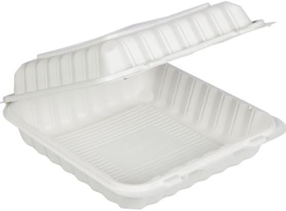 Single Compartment Hinged Container, 9″ x 9″, White, 150 ct