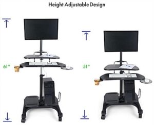 Mobile Workstation Desk with Height Adjustable Sit Stand Design