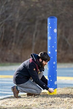 This blue snowflake pattern bollard post cover is a fun and festive way to give the interior/exterior of your business a seasonal upgrade. Printed on a stretchy polyester fabric, this decorative and weather-resistant holiday pole wrap can be applied to most standard-sized 60” tall poles. Each flame-resistant snowflake bollard post cover has an elastic bottom to keep the sleeve safely secured in place. These holiday pole wraps will easily fit over most 7” diameter columns. This winter design will help spread seasonal cheer to your storefront, parking lot and is easy to maintain because it is machine washable. Our new printed decorative bollard post cover will spice up your commercial space and get passersby in the holiday spirit, potentially driving more traffic to your storefront!