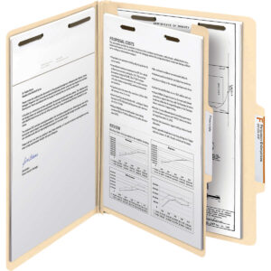 These ideal project files allow you to create subdivisions of material or organize sequentially within one folder. Fasteners on front and back panels and dividers create four separate filing surfaces.