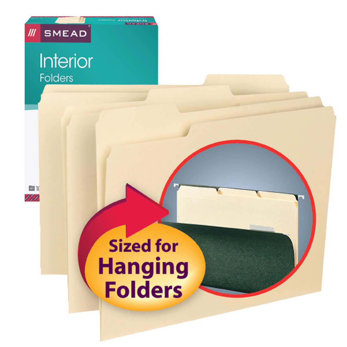 Smead Interior File Folder, 1/3-Cut Tab, Letter, Manila, 100 ct