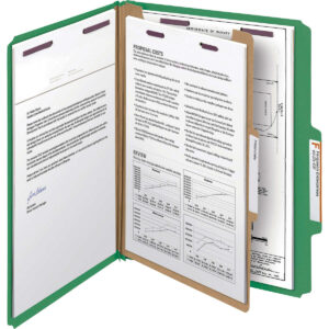 Protect your documents and fingers with Smead’s patented SafeSHIELD Coated Fastener Technology–the ultimate solution to fastener issues, including paper tears, finger cuts and excessive fastener crinkling. Fasteners on front and back panels and dividers create up to eight separate filing surfaces within one folder.