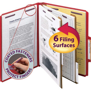 Smead Pressboard Classification Folder, 2 Divider, 2″ Expansion, Letter, Bright Red, 10 ct