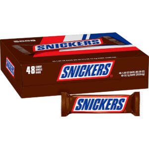 This bulk chocolate candy box includes 48 individually wrapped Full Size SNICKERS candy bars. Unsatisfied? Maybe you just need a SNICKERS. Packed with roasted peanuts, caramel, and nougat covered in milk chocolate, SNICKERS candy bars make your day go from “Meh” to “Satisfying” in just one bite. Individually wrapped bulk Full Size candy bars are ideal for keeping the pantry stocked for movie night with the family and small celebrations with friends. These satisfying candy bars make great on-the-go treats, pack them in lunches, or take them along on family road trips to enjoy peanut-packed chocolate candy on the road. Bulk SNICKERS candy bars are a tasty way to share your love of peanut chocolate candy with friends and family. Buying candy bars in bulk ensures you have plenty of chocolate on hand for filling candy bags and candy gift baskets. Be the best house on the block this Halloween when you hand out Full Size SNICKERS chocolate candy to Trick-or-Treaters. Full Size candy bars make great stocking stuffer candy gifts and Easter basket candy. SNICKERS Full Size chocolate candy bars make break time more satisfying. This 48-count bulk candy package is great for filling vending machines, concession stands, and even the office pantry. Stock up and share the satisfying taste of SNICKERS bulk candy with friends, family, and coworkers.