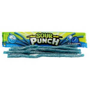 Sour Punch Straws are a classic American candy bursting with fruity blue raspberry flavor and covered in a unique sour coating. Grab a classic single serving 2-ounce tray and share with friends or keep the entire stash of 24 packs for yourself! These 7-inch-long sour candy straws feature the perfect combination of sweet and sour fruity flavors for sipping a delicious beverage while binge watching your favorite show. Smothered in a signature sour coating with nothing but sweetness underneath, you can enjoy snacking on them and sipping your favorite drink from them! These candies have been around for three decades and still delight people’s taste buds from one generation to the next. This box of 2 oz Sour Punch Blue Raspberry Straws is ready to be resold. The container can be made into a convenient display box, perfect for concession stands, convenience stores and parties. Stock up and save on all varieties of Sour Punch Straws!