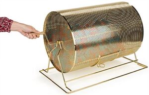 This large raffle drum is constructed from high quality wear-resistant brass plated steel, for thousands of spins. The brass raffle drum, including its sturdy base is 25″w x 16″d, and stands 18″ high. Each drawing box features a 5-3/4″ wide drop slot and an easy-grip polished wooden turning handle. The 6″w x 6″d trap door is centered on the raffle ticket drum and is reliably secured with a durable latch for easily drawing a winner or loading a large volume of tickets.