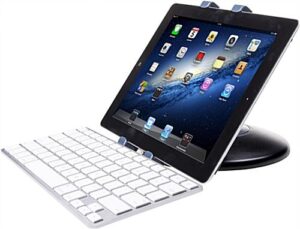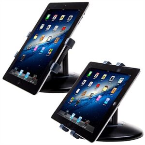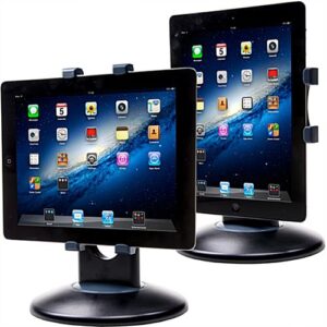 Each desktop iPad stand that will perch an Apple® tablet is adjustable. This mount can rotate a full 360° for different viewing arrangements. Also, this desktop iPad stand that is an adaptable design can tilt 180° as well as switch from portrait to landscape format for a variety of perspectives. Adjusting this tablet perch is easy with just a gentle pivot of the enclosure. This Apple® accessory, desktop iPad stand can accommodate most 7”-10” tablets for a universal fixture. The design of this holder is inspired by the vast selection of tablets that are consistently coming up with new models. This mobile desktop iPad stand can hold a variety of iPad models. Other digital notebooks of equal or relative size can be adjusted to fit securely inside of this enclosure as well which can hold between 7.25” and 10.75” models. Purchase an Apple® tablet holder today!