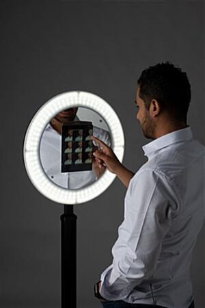 iPad Photo Booth Stand with Light Ring – 19” Dimmable LED for Social Engagement