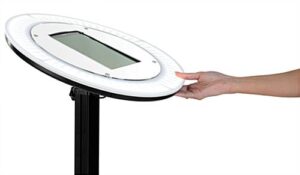 Our iPad photo booth stand with light ring can serve as a lead gathering tool or help attract customers to your trade show booth and help you communicate with a new audience. A lightweight, portable design and quick assembly allow you to easily supply a party with something fun, rent to a wedding, enhance photography sessions, or assist with content creators and streamers at home. Featuring a height adjustability knob, the black photo booth stand with light ring and sturdy base adjusts between 55”- 70” to ensure people of different heights get the best angle possible. Additionally, the beauty light knob allows you to change the color temperature from a cool 5600K to a warm 3200K in an instant to capture ideal lighting at dim trade shows or bright outdoor social sharing events. Ensure your Apple and Galaxy 9.7” devices are always protected with a completely anti-theft tablet enclosure reinforced with star-shaped security screws for complete theft-prevention at lead gathering opportunities, parties or weddings. The lightweight portable structure will allow you to put it in a travel case and easily get it to the next event, move between rooms, and is compact enough to fit in your home office. The sleek and modern design of the photo booth stand and a tuck away cable management system create a professional-looking environment regardless of the type of event.