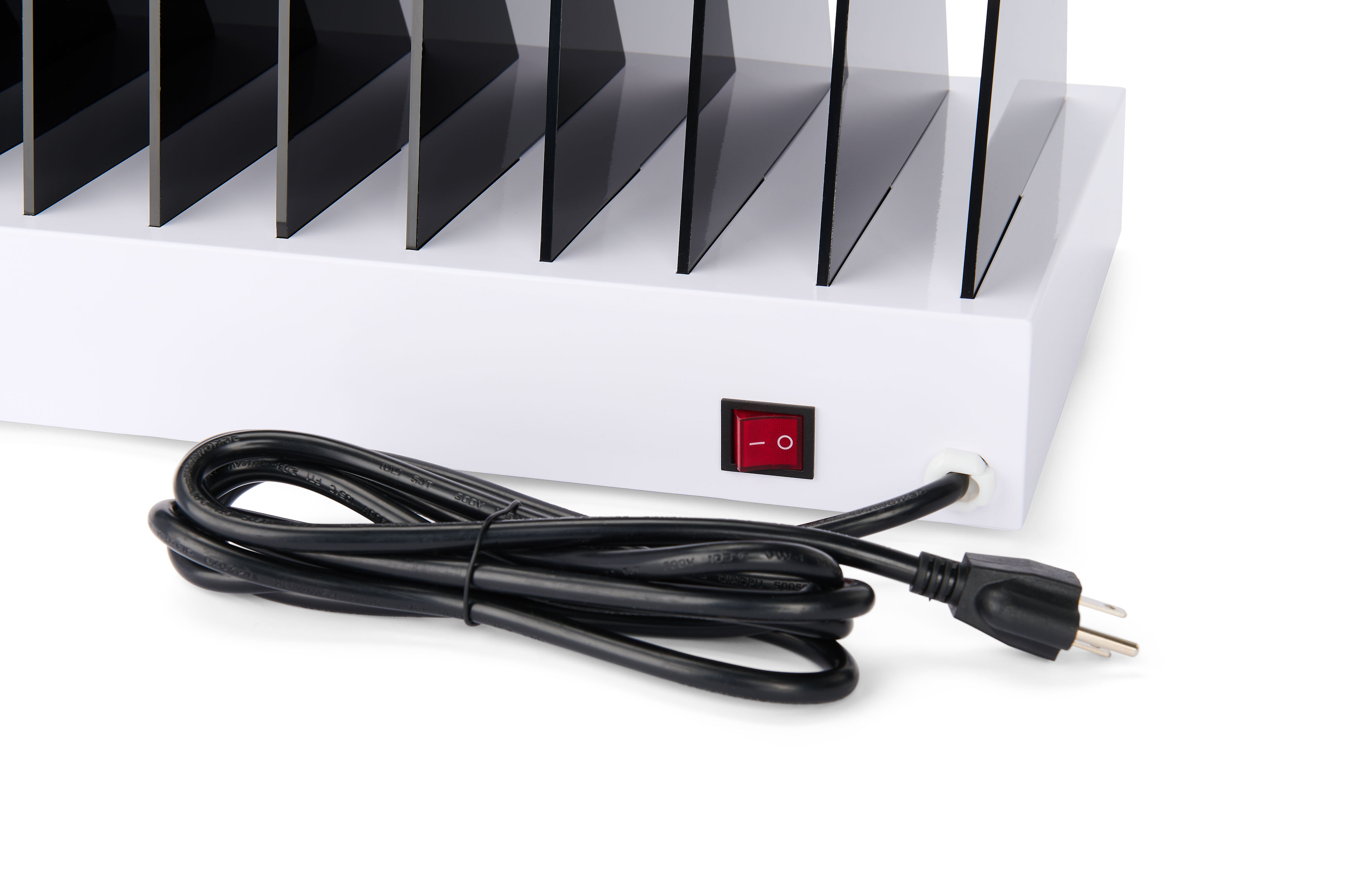 Tabletop Charging Station w/ Adjustable Dividers 6 AC, 6 USB Outlets- White