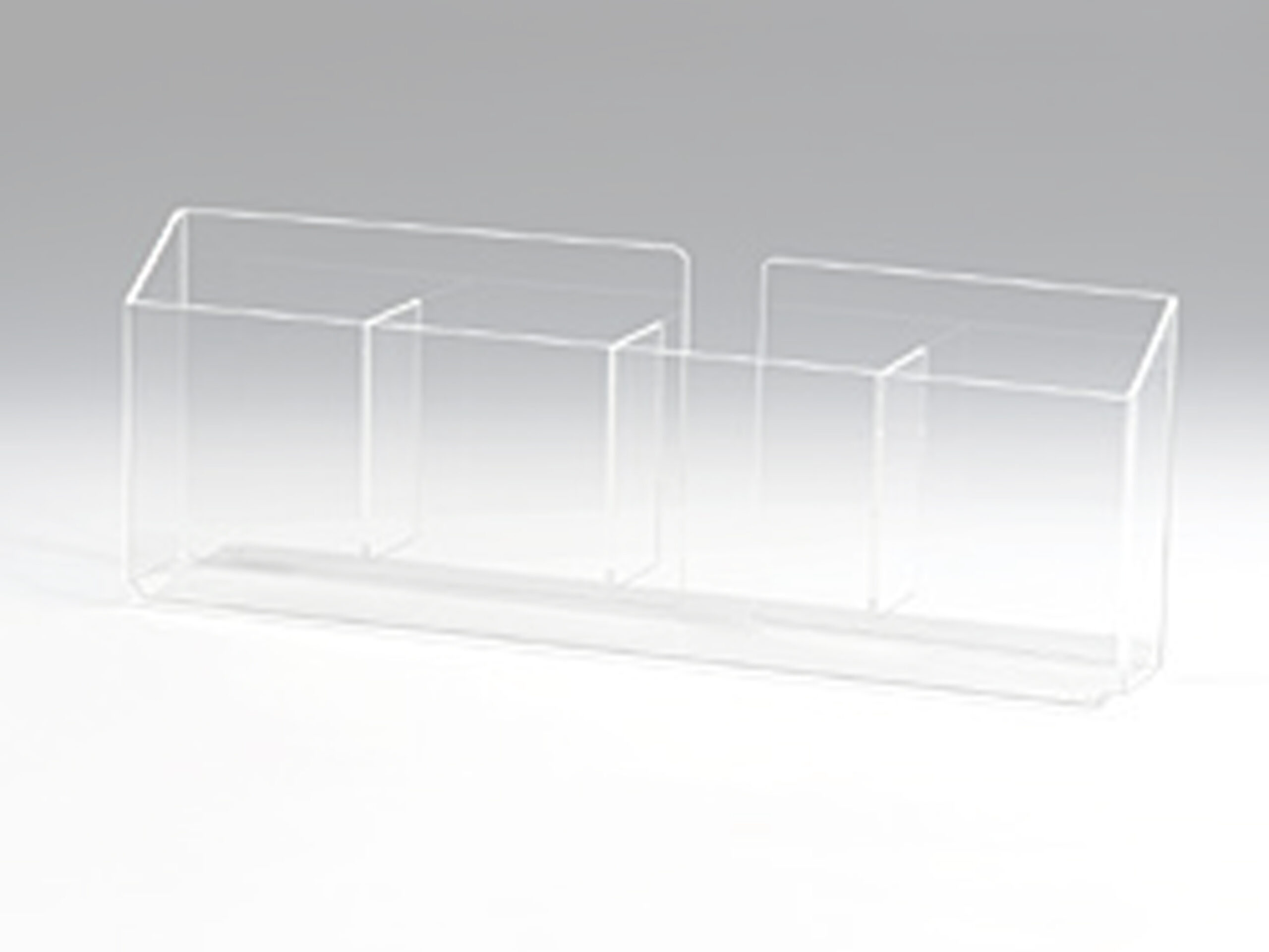 Give your business an organized appearance with one of our acrylic pamphlet dispensers. This pamphlet dispenser has permanent dividers that create four pockets to hold your literature. Each of the pockets is 2″ deep and designed to accommodate standard 4″ x 9″ brochures. The pamphlet dispenser also has rubber feet at its base to prevent skidding and hold the display securely in place.