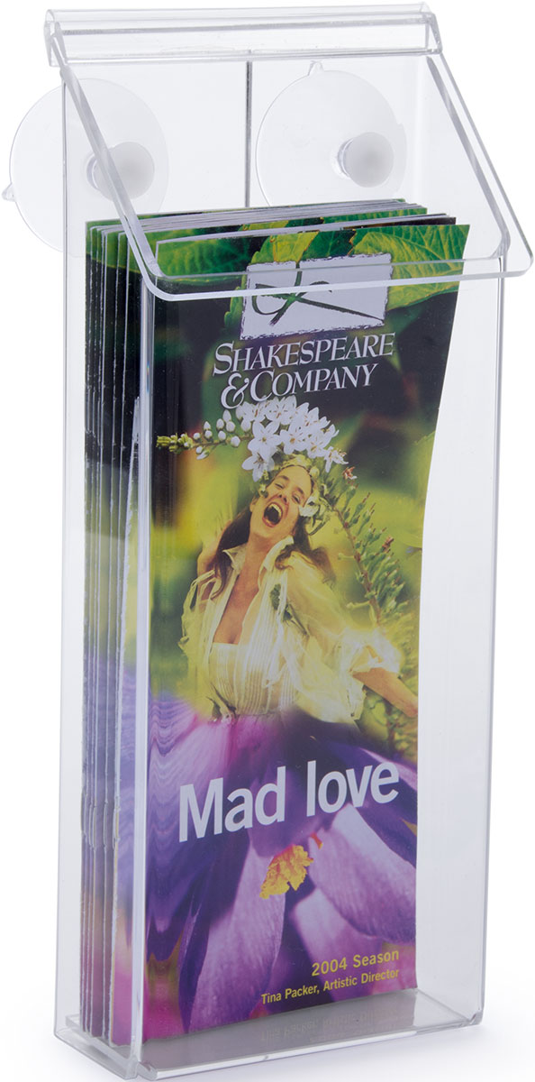 Outdoor Acrylic Brochure Window Rack, 4″w, Hinged Lid, Suction Cups – Clear