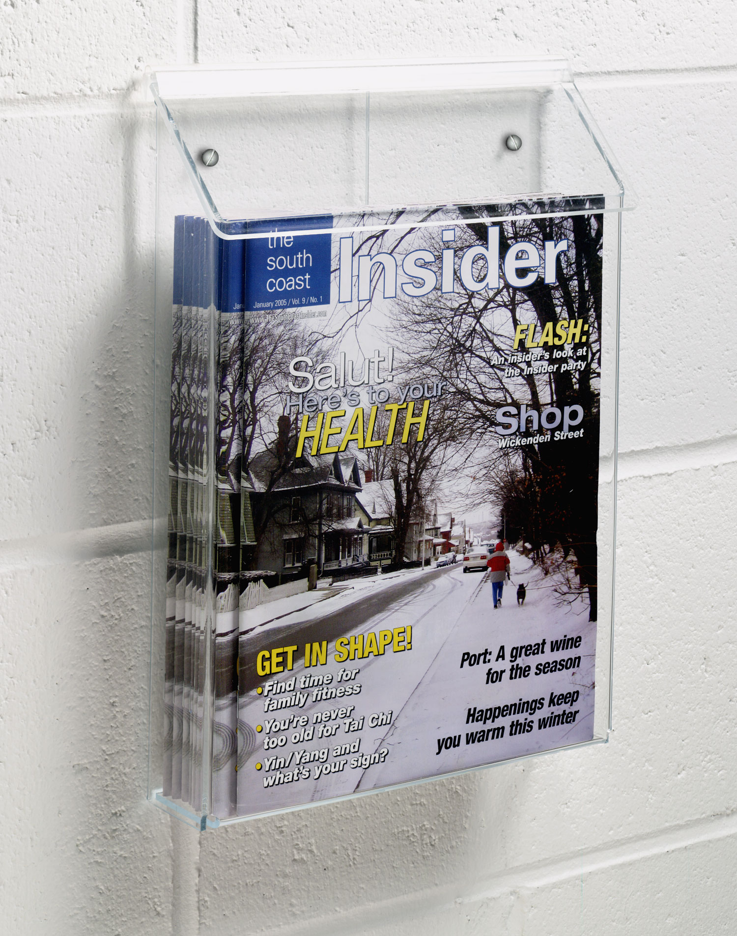 Outdoor Acrylic Magazine Wall Rack, 8.5″w, Single Pocket, Hinged Lid – Clear
