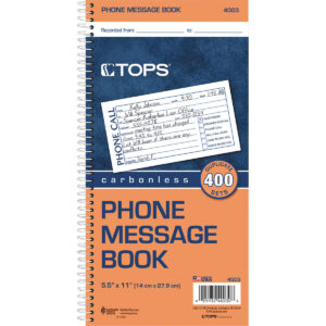 TOPS Carbonless 2-Part Telephone Message Book, 3-7/8″ x 5-1/2″, 400 Sets