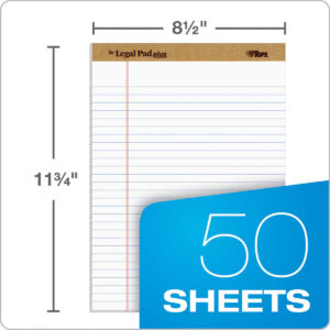 TOPS Legal Pad Plus, Legal Ruled, White, 8-1/2” x 11-3/4”, 50 Sheets, 12 Pads