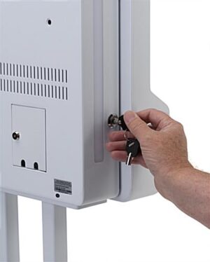 This digital hand sanitizer floor kiosk offers multiple function capabilities and pairs it perfectly with a touchless gel hygiene dispenser. Convenient features like the built-in touchless sensor, Android 7.1 OS, LED indicators, 5L (169 fl oz) refill container, and remote control make this free-standing unit is a smart decision. Our touchless hand sanitizer floor kiosk is ideal for healthcare facilities, retail stores, restaurants, offices reception areas, and convenient stores. This floor-standing anti-bacterial wash station provides a level of comfort for your employees and patrons. It is also a great marketing opportunity for conveying information such as essential public health updates, reminders to cleanse, and valuable company updates. Think of the advertising possibilities this digital sanitizer floor kiosk provides when you have audio, video, picture, and slide show capabilities. Simply place a hand into the blue LED dispensing area and the built-in sensor will release the exact amount of anti-bacterial wash needed. No special cartridges need for refill purposes, and we recommend purchasing the Displays2go branded gallon replenishment gel jug. LED shows green when levels are sufficient and red when empty, so you have easy indicators when it’s time to refill.
