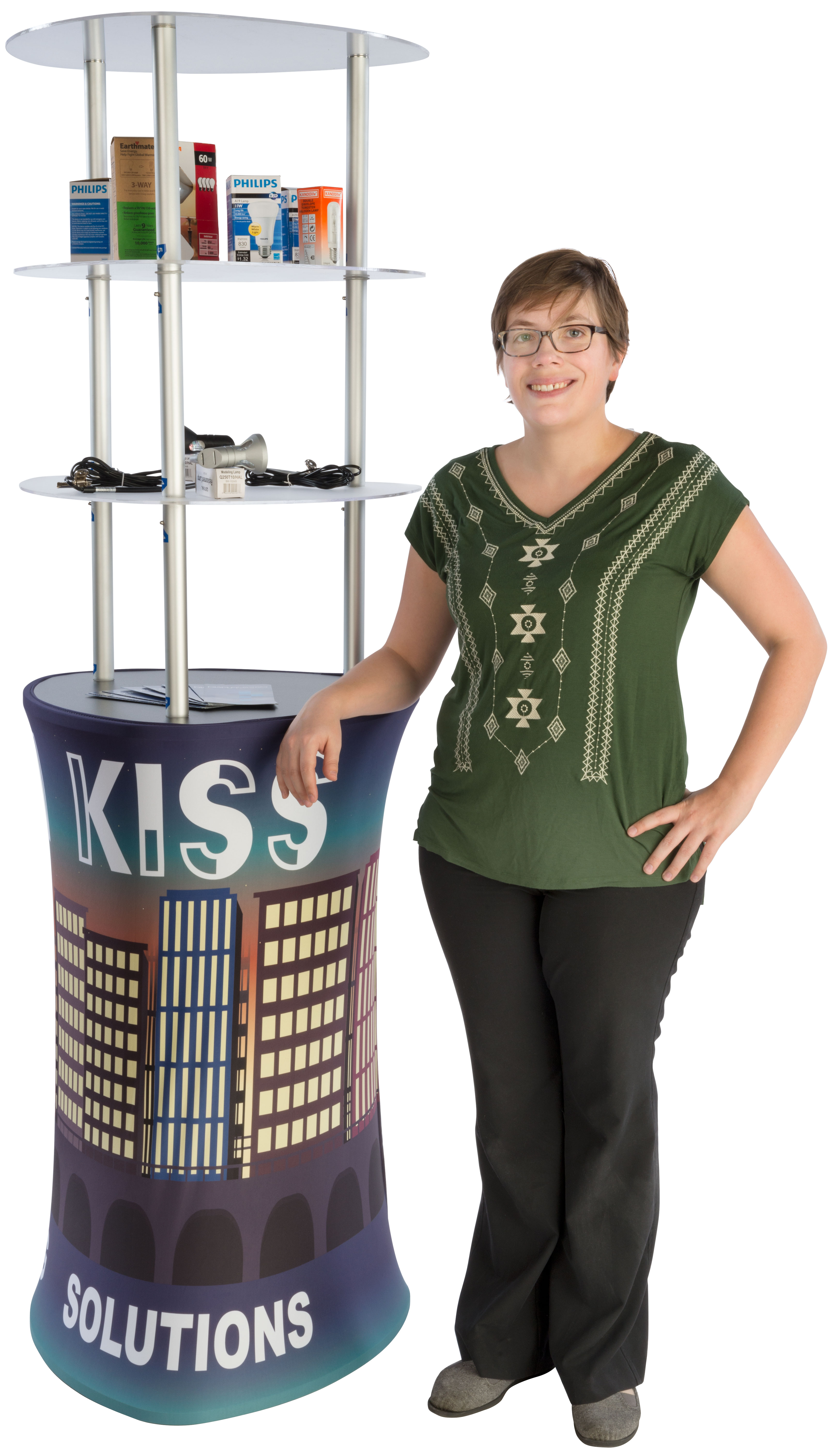 Trade Show Display Tower w/ Acrylic Shelves, Custom Fabric Cover, Portable – Silver