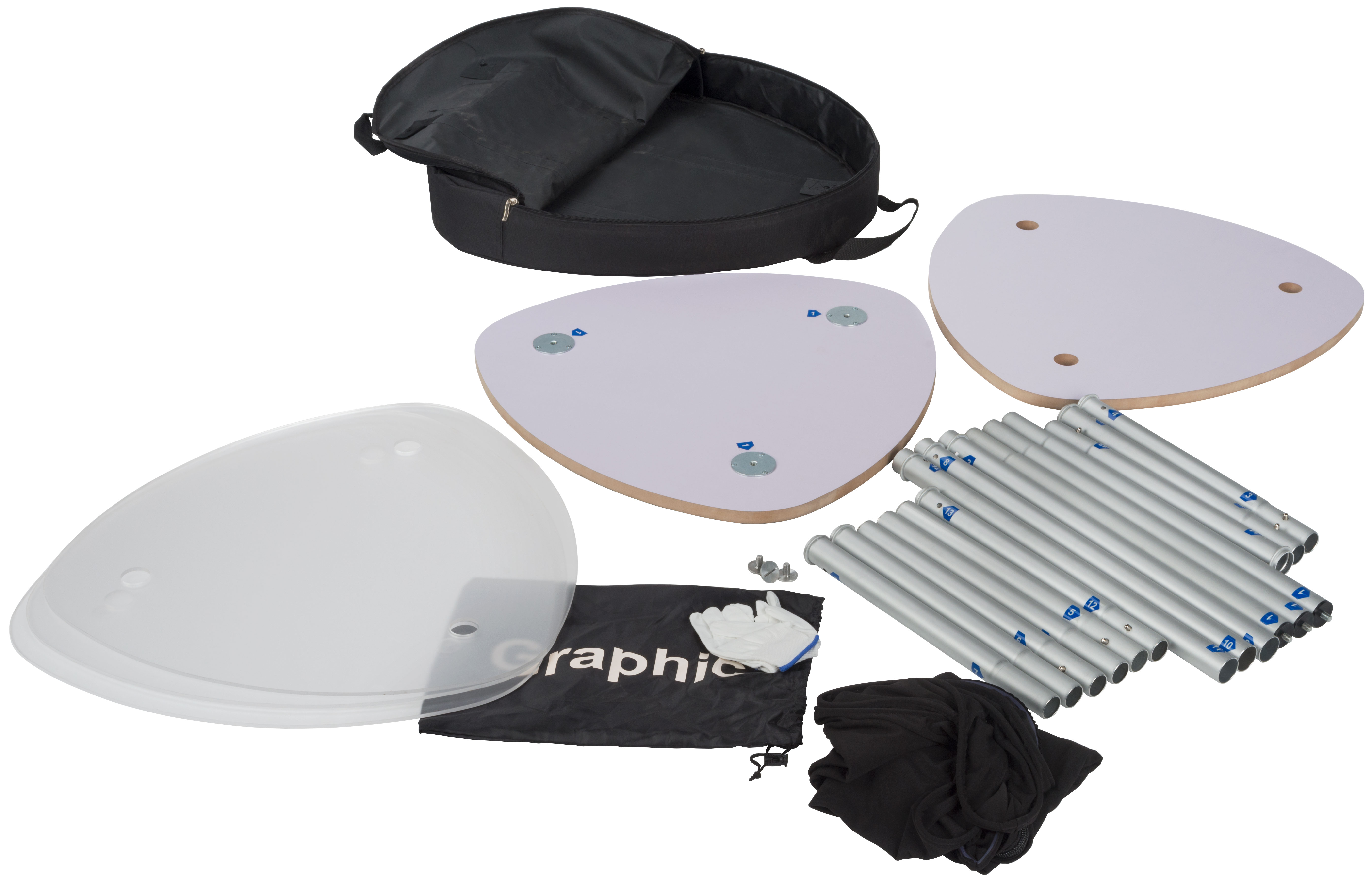 | Material | Aluminum, Dye-Sublimated Fabric, High Impact Acrylic, MDF (Medium Density Fiberboard) |