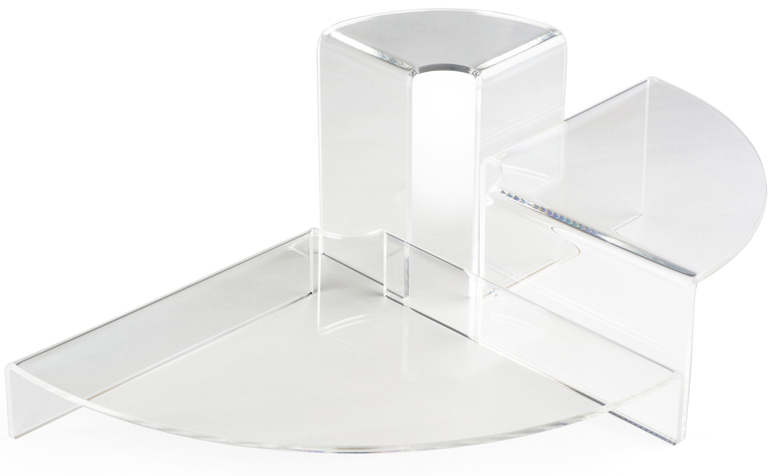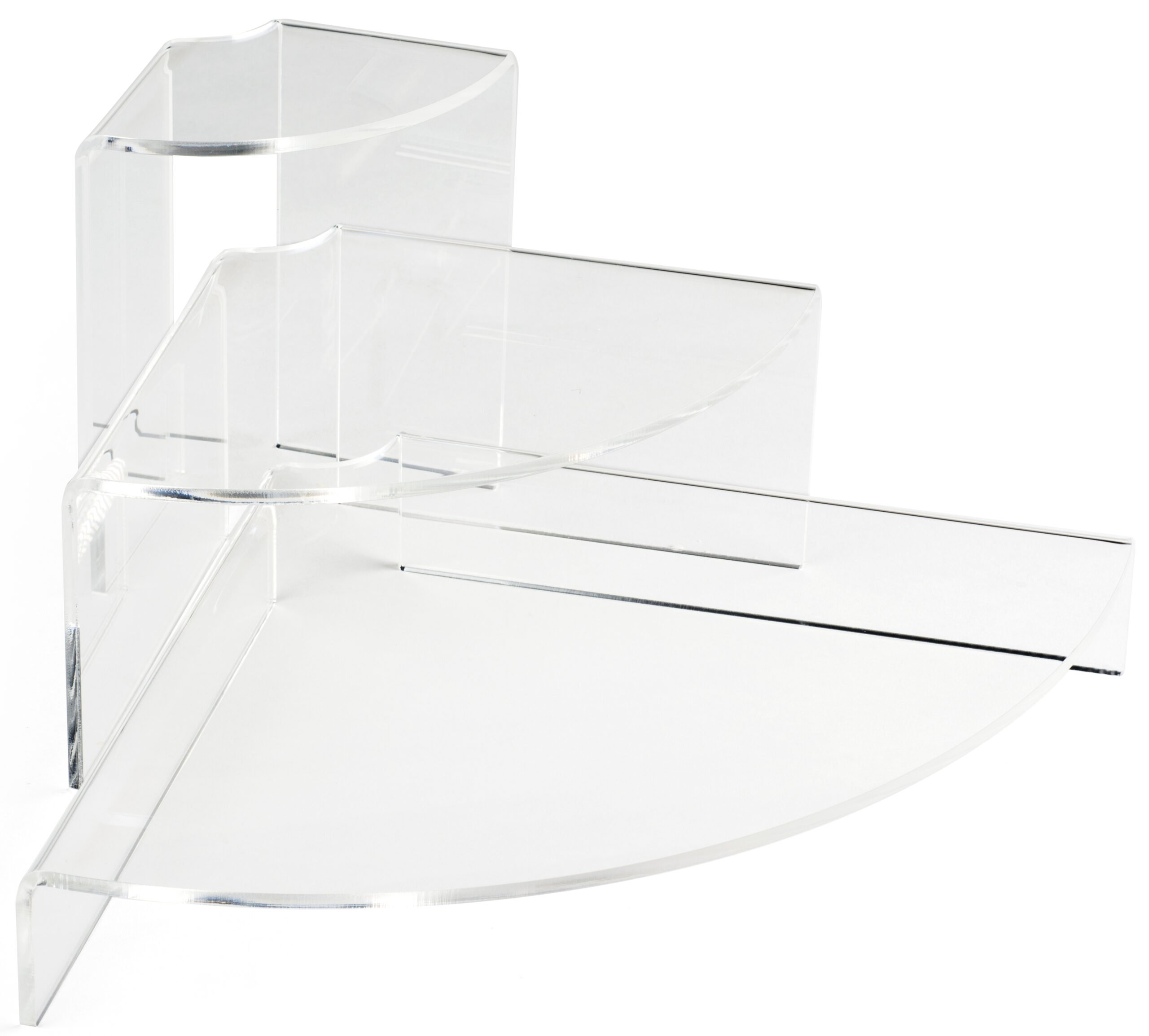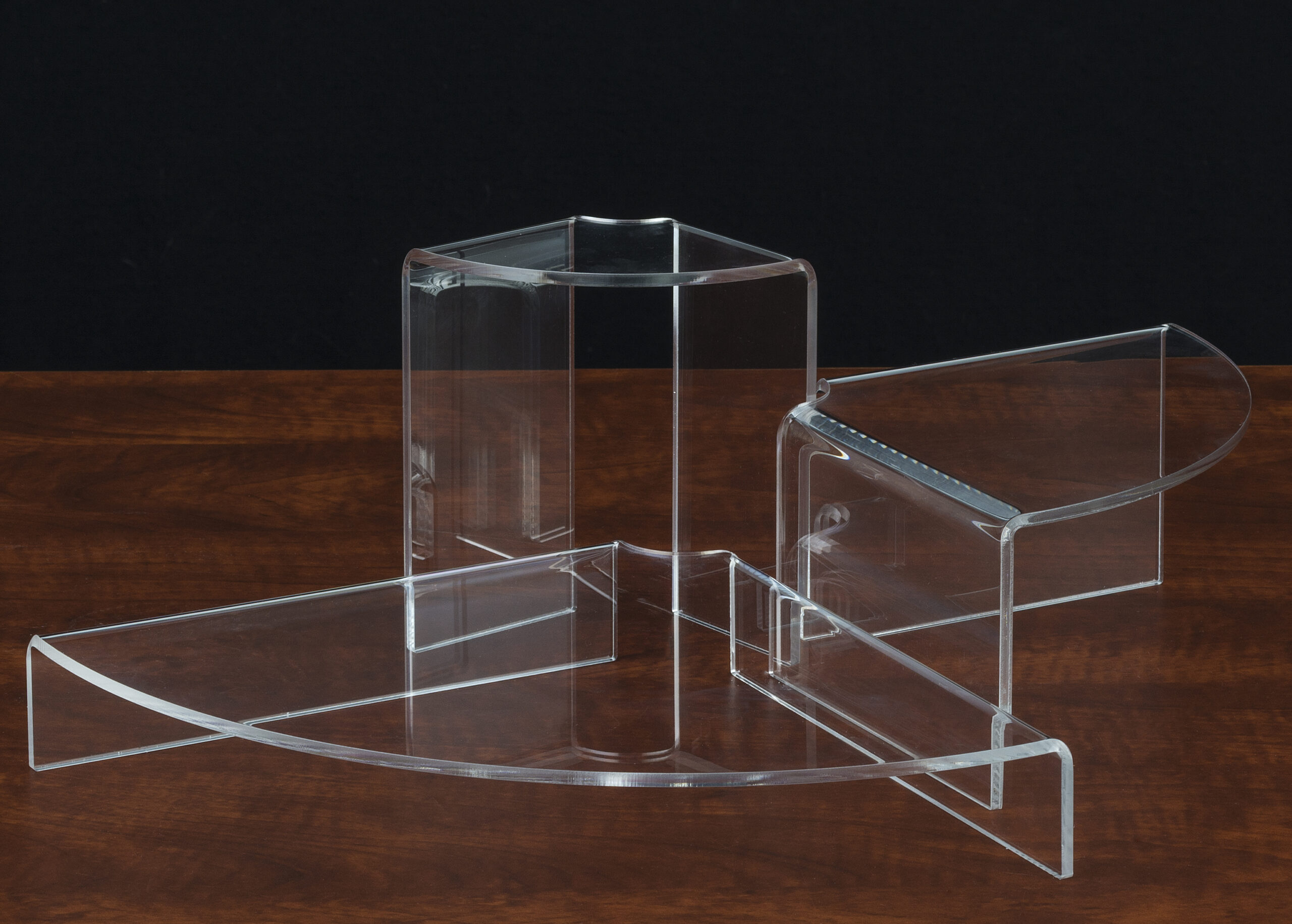 This nested riser set is an acrylic display which features 3 stands that provide multiple levels for displaying products. A versatile design, the steps can be arranged as a tiered showcase or in a circle for alternate effects. If displayed in a tapered fashion, there is a 1.4375” clearance between each step of the product riser set for plenty of merchandising space. There are plenty of opportunities for presentation using the varied shelf sizes of the acrylic display between 5.5” and 14” wide. Small and lightweight, the riser set is a great design for traveling and displaying company merchandise at trade shows or exhibitions. Each stand is constructed of .25” thick plastic for a long lasting and durable fixture.