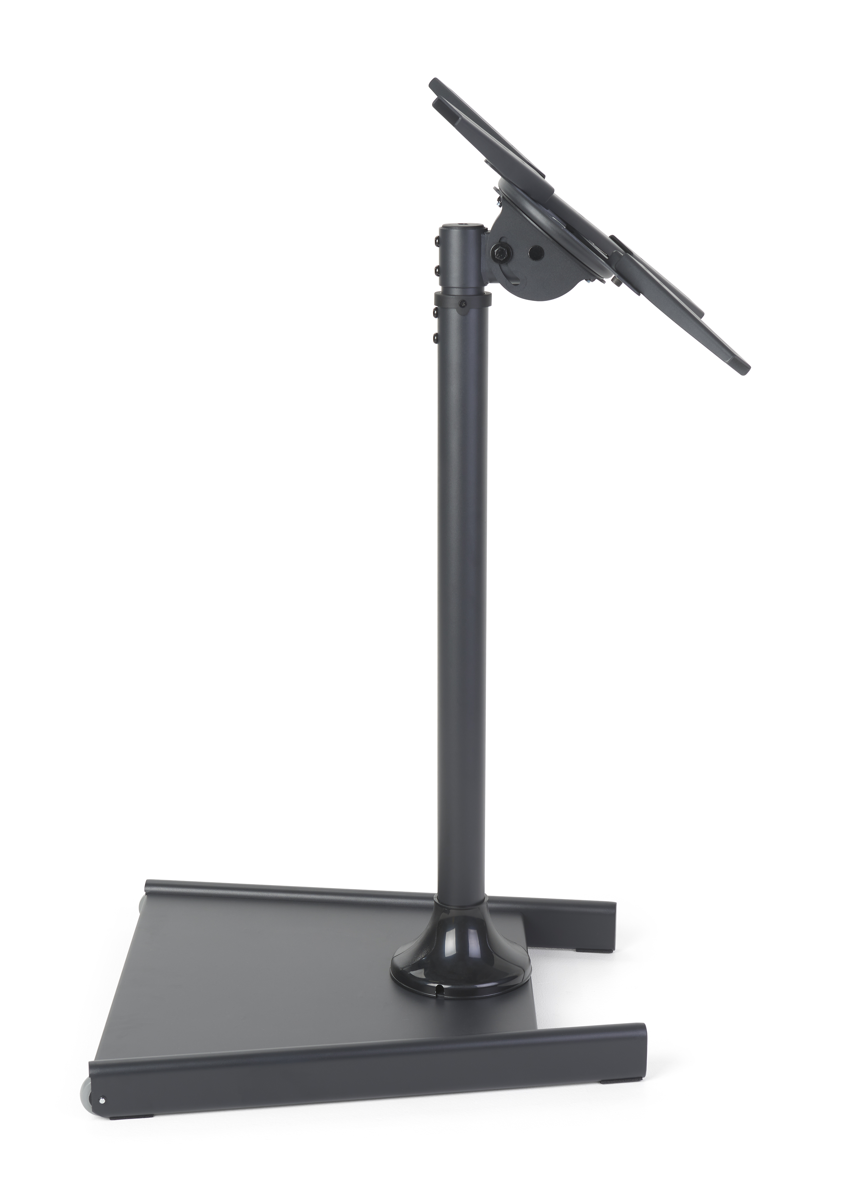 This flat screen digital lobby kiosk stand, also known as a slanted plasma mount, can be used to direct guests to the appropriate location. This office building signage is the ideal electronic communication tool for businesses in need of directing visitors. This tilting digital lobby kiosk stand allows users to slant screen at a good angle with a range of 69 degrees. This electronic tilted plasma stand has a hollow post to easily hide wires. This digital lobby kiosk stand weighs 82 lbs. for a sturdy fixture. This office building advertising stand has a steel frame to provide a stable and lasting display. This digital lobby kiosk stand is economically priced and a great deal for many businesses!