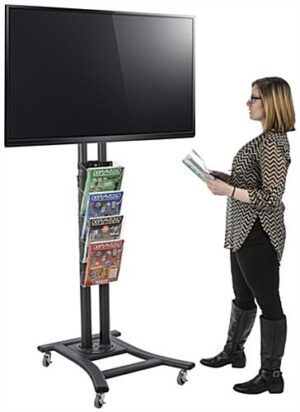 TV Stand w/ Wheels & 4 Pocket Literature Rack, For 32”-65”, Height Adjustable – Black