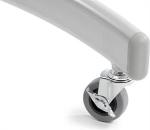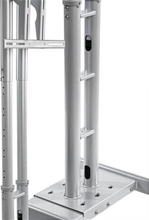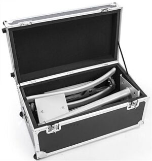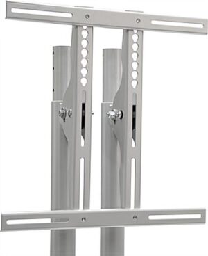 This portable TV stand with case is designed for those who travel often and who frequently set up temporary displays, such as at a trade show exhibit or on a promotional tour. The floor-standing fixture has a knockdown design that makes it incredibly easy to transport to and from an event. Included with every unit purchased is a travel case in which the display fits snuggly. Setup is incredibly easy and should only take minutes to complete. This silver portable TV stand has a height adjustable design with 5 set heights between 51 and 69 inches from the ground. The adjustable mounting bracket is compatible with VESA mounting patterns up to 700×500, fitting most brand names and models between 32” and 65” that weigh up to 110 pounds. The locking caster wheels allow for easy movement during setup and reliable stability while in use. Finally, the portable TV stand has a hollow post design, which enables users to feed wires down from a monitor to the base to create a clean, more attractive presentation.