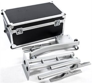Silver Portable TV Stand w/ Case Assembles Quickly for Trade Shows