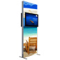 This backdrop TV stand is ideally meant for use in a trade show exhibit or in a commercial setting, such as a retail store or a hotel lobby. The two-sided floor-standing fixture includes (2) stationary mounting brackets for displaying flat screen monitors between 26” and 40” that weigh less than 25 pounds. Also provided are 2 fabric banners that are printed from custom artwork. Simply download the templates and submit a design during checkout to begin the printing process. This double-sided backdrop TV stand is also equipped with a hard carrying case to keep the aluminum fixture protected in-between uses. The 94.5-inch-tall display is sure to capture the attention customers and guests as it pairs static print advertisements with videos and interactive presentations.